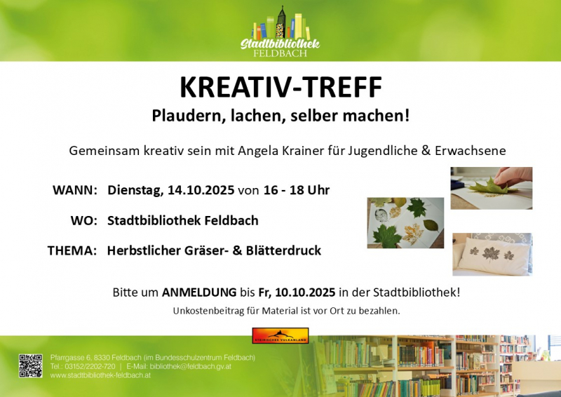 KREATIV-TREFFDatum: 14.10.2025 - 16:00 Uhr |